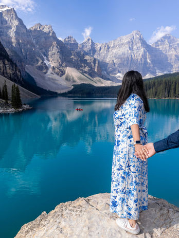 Expert Planning and Guidance: Noel has spent years exploring the trails and hidden gems around Moraine Lake, and we will help guide you to the best locations to capture your dream photos. With our experience, you can rest assured your special day will be perfect.